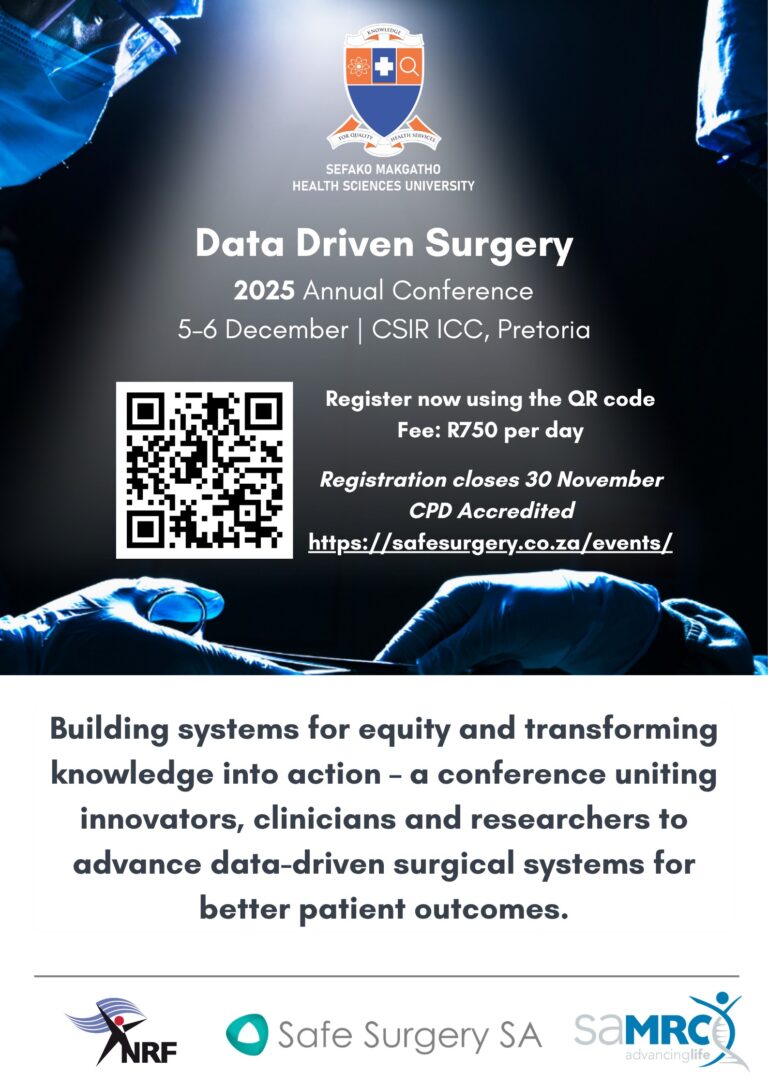 On Wednesday the 4th of December 2024, a conference on Data Driven Surgery: Empowering Policy & Practice, was co-hosted by Sefako Makgatho Health Sciences University (SMU) and Safe Surgery SA. The programme included impactful presentations by high-profile South African and Namibian colleagues, and insightful discussions guided by illustrious panellists. Find the programme here.
